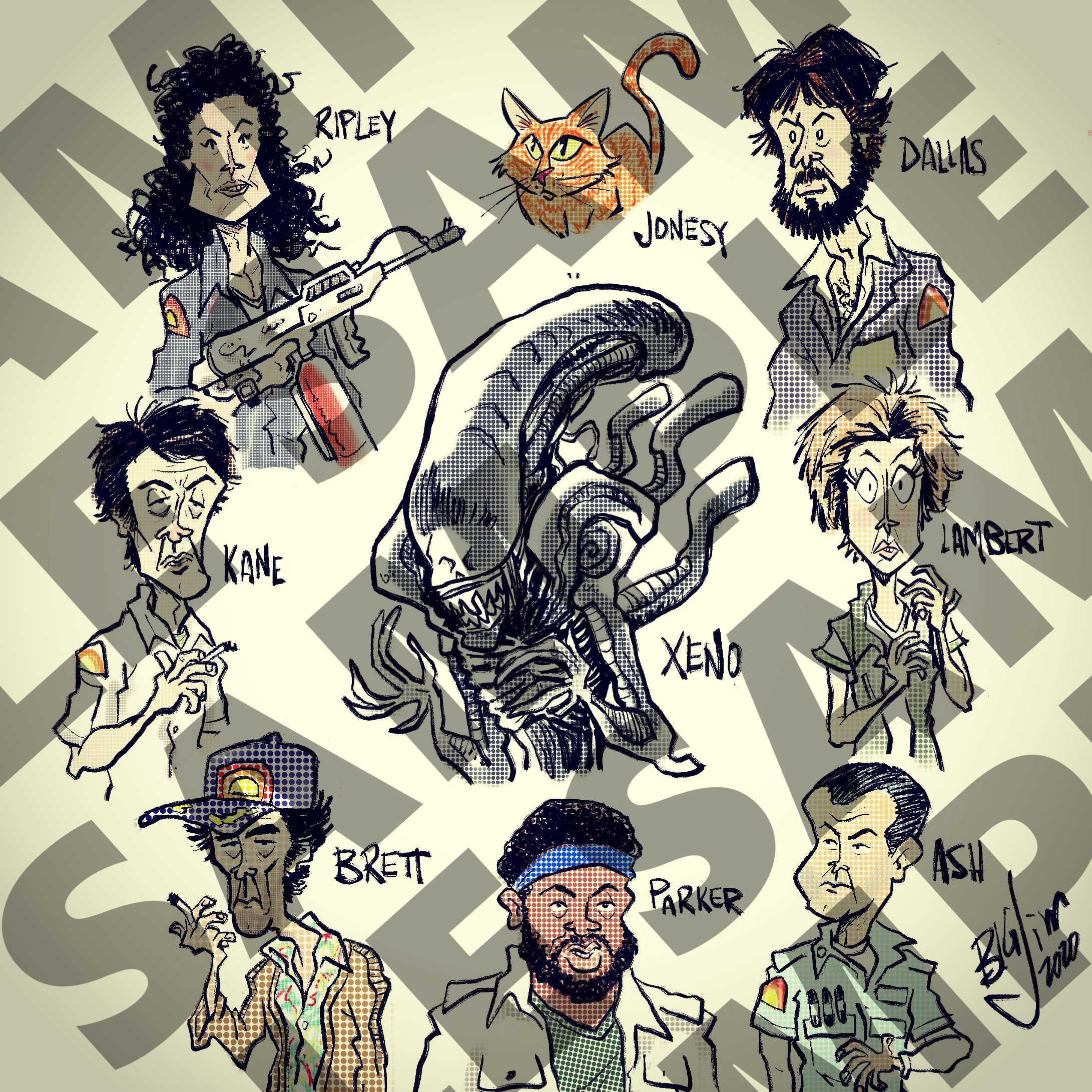 8" x 8" High quality print of the cast of the 1978 film "Alien". Will come signed and numbered by the artist.
