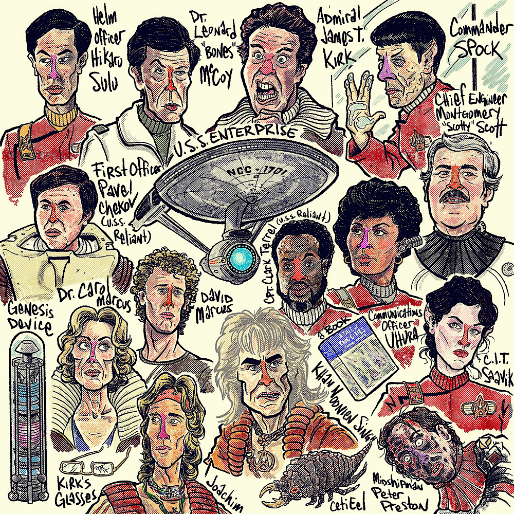NEW!! 8" x 8" High quality print of the cast of the 1982 film "Star Trek II: The Wrath of Khan". Will come signed and numbered by the artist.