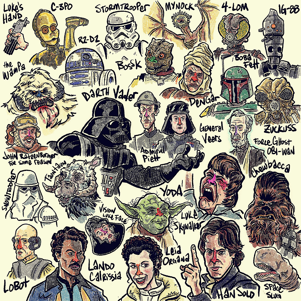 NEW!! 8" x 8" High quality print of the cast of the 1980 film "The Empire Strikes Back". Will come signed and numbered by the artist.
