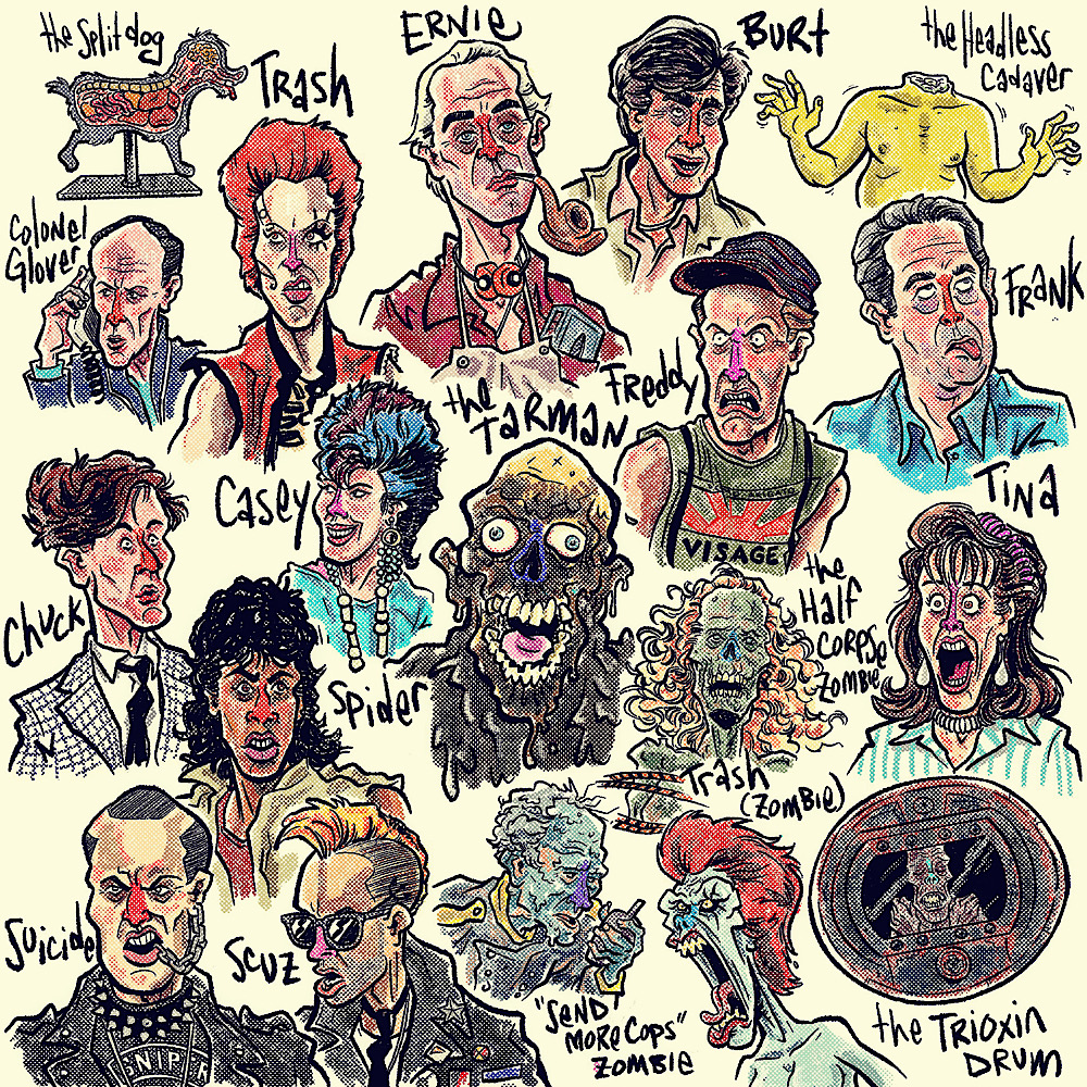 NEW!! 8" x 8" High quality print of the cast of the 1984 film "Return of the Living Dead". Will come signed and numbered by the artist.